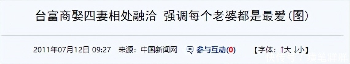 参考资料:中国新闻网《台富商娶四妻相处融洽 强调每个老婆都是最爱(图)》